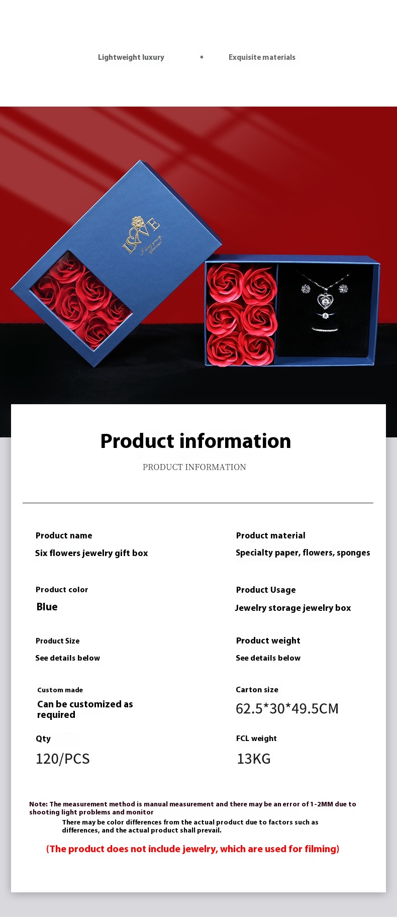 Touch Paper 6 Roses Jewelry Box Valentine's Day Jewelry Packing Box
